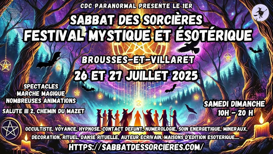 La 1ʳᵉ édition du Sabbat des Sorcières aura lieu à Brousse-et-Villaret (11 – Aude), à seulement 20 minutes de Carcassonne (à 20 min de Carcassonne) les 26 & 27 juillet 2025.