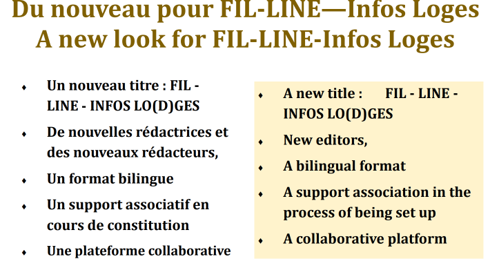 FIL (FIL INFOS LOGE) est un média au service des loges francophones avec des Infos, des Réflexions, des Témoignages, du Partage…. Pour mieux vivre en loge !