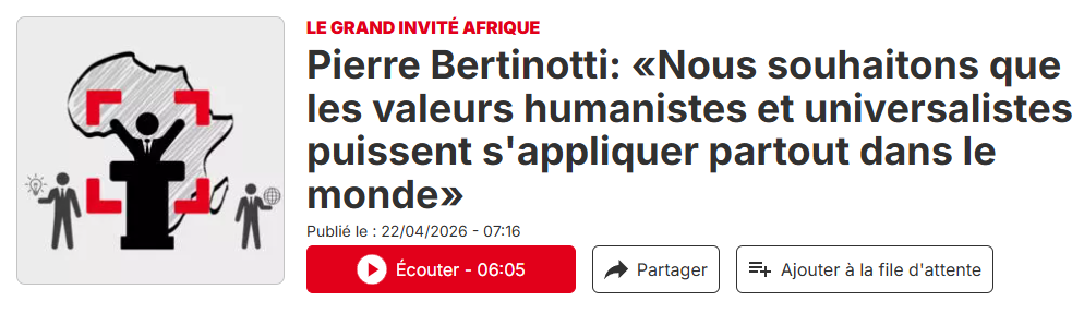 Pierre Bertinotti évoque aussi plusieurs défis majeurs pour le continent africain : les conflits, les tensions régionales, le changement climatique et le recul de l’aide au développement. Son propos souligne que l’humanisme n’a de sens que s’il s’incarne dans les réalités concrètes.