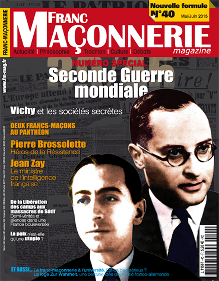 Le dernier numéro de Franc-Maçonnerie Magazine N° 40 de Mai/Juin 2015 est en kiosque avec un numéro spécial consacré à la 2nd Guerre Mondiale : Vichy et les sociétés secrètes.