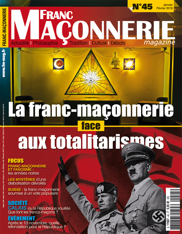 Franc-Maçonnerie Magazine N° 45 (Janvier / Février 2016) est sortie en kiosque et il consacre sa couverture avec un dossier « La Franc-Maçonnerie face aux totalitarismes »