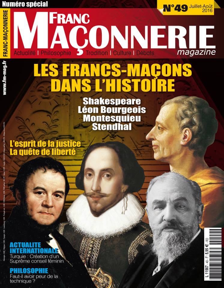 Franc-Maçonnerie Magazine N° 49 (Juillet/Août 2016) est sortie en kiosque et il consacre sa couverture à un dossier intitulé «Les francs-maçons dans l’Histoire» :