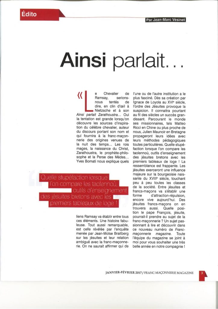 Franc-Maçonnerie Magazine N° 53 (janvier/février 2017) est sortie en kiosque et il consacre sa couverture à un dossier intitulé «Les Jésuites, le Pape et les Francs-Maçons»