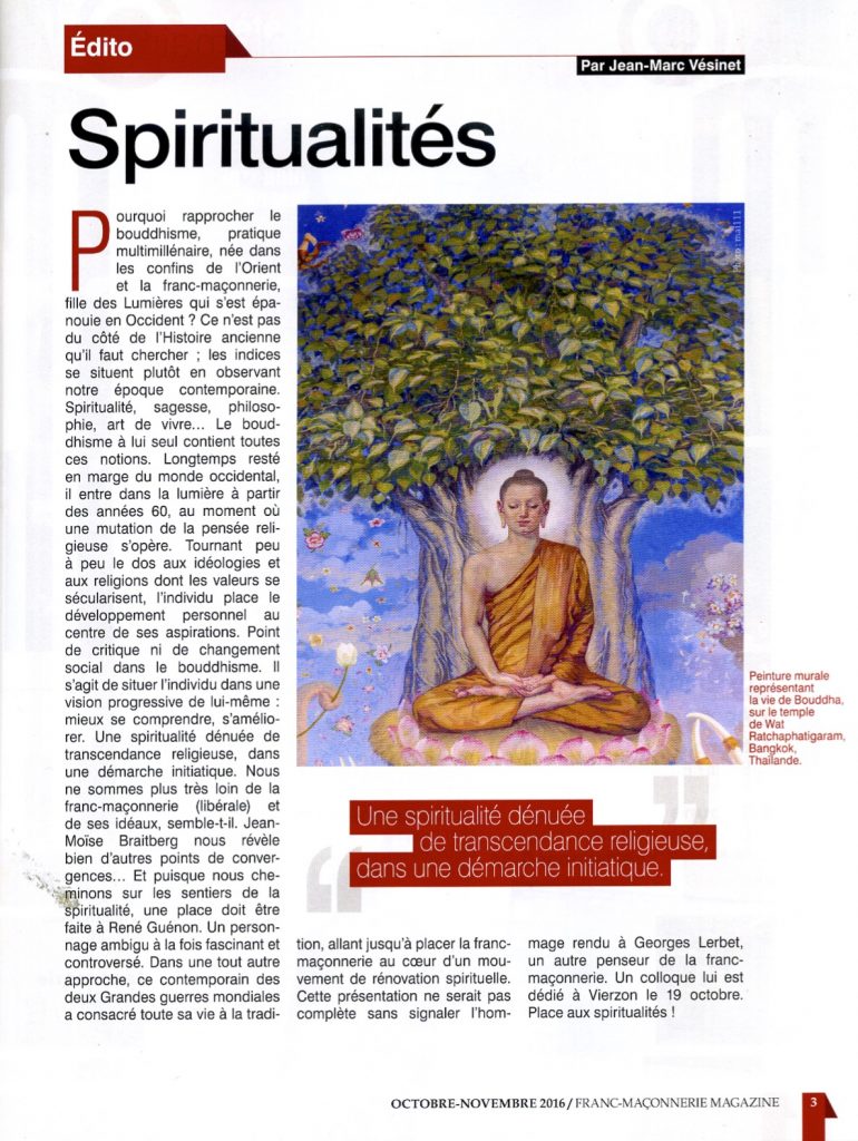 Franc-Maçonnerie Magazine N° 51 (octobre/novembre 2016) est sortie en kiosque et il consacre sa couverture à un dossier intitulé «Bouddhisme, franc-maçonnerie et occident»