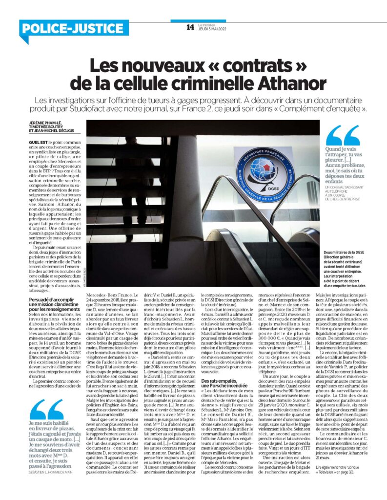 Dans son édition du 05 mai 2022 le journal Le Parisien a publié un article sur l’affaire de la Loge Athanor suite à la diffusion ce soir de l’émission « Complément d’enquête » sur France 2 qu’y consacre.