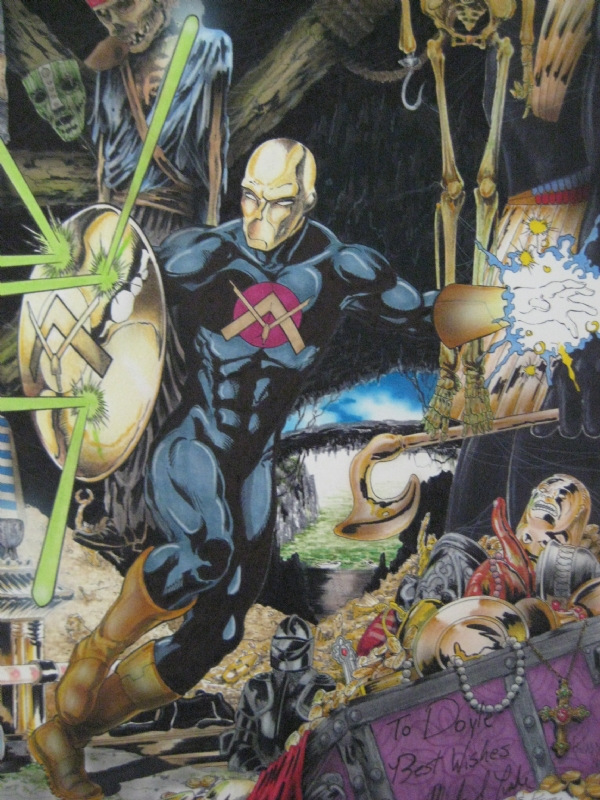 Arborant l’équerre et le compas sur son bouclier et sur son torse, il symbolise les francs-maçons et est l’allier notamment de Monolith un énorme golem qui fait partie de l’organisation « Supernation » pour défendre la planète Terre.