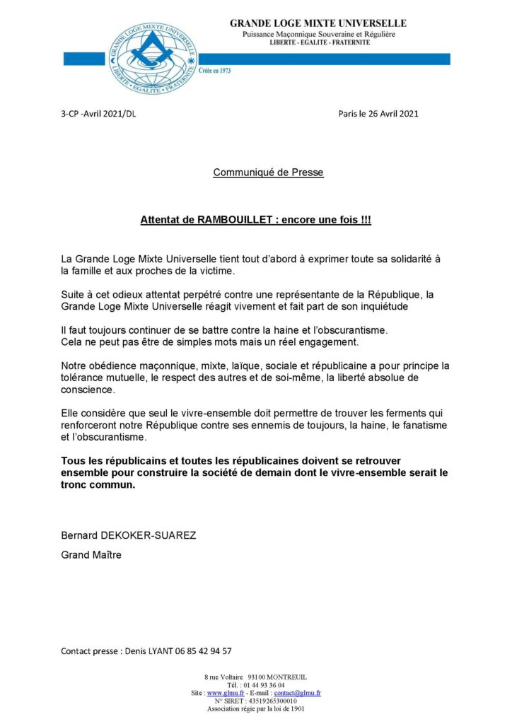 Grande Loge Mixte Universelle réagit vivement et fait part de son inquiétude