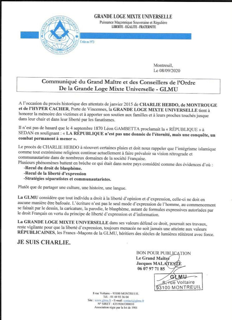 COMMUNIQUE DE LA GRANDE LOGE MIXTE UNIVERSELLE (GLMU)