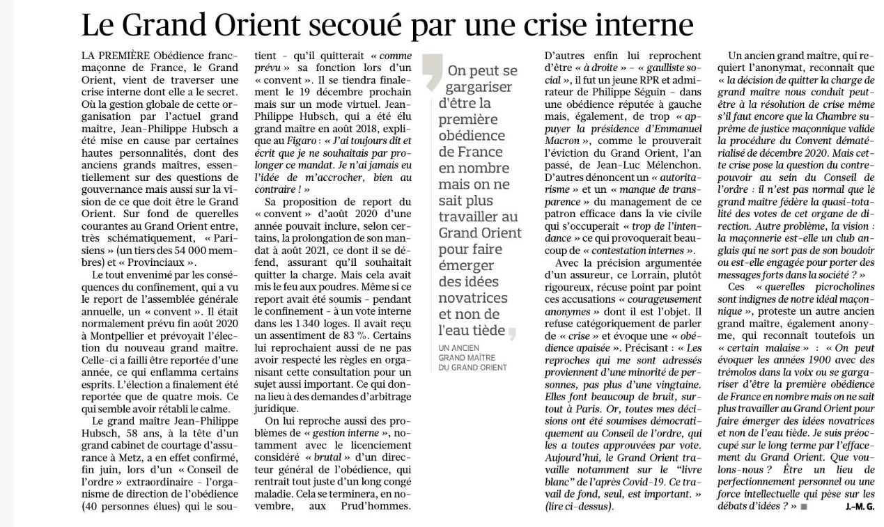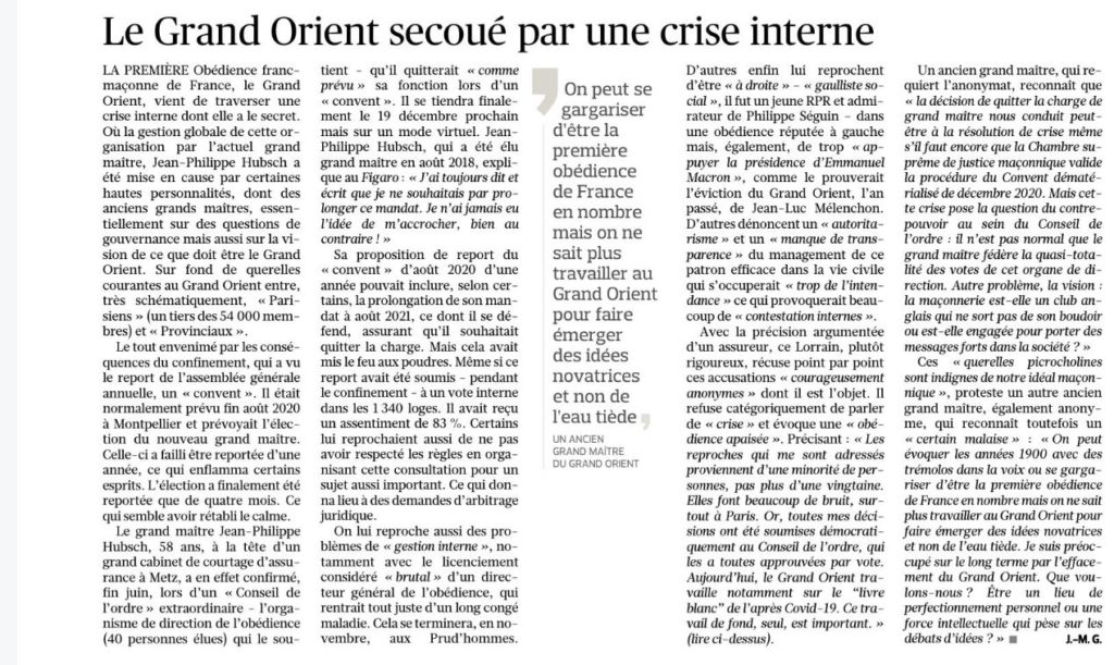 L’ ÉDITION DU 08 JUILLET 2020 de Le Figaro consacre 2 articles aux Grand Orient de France (19)