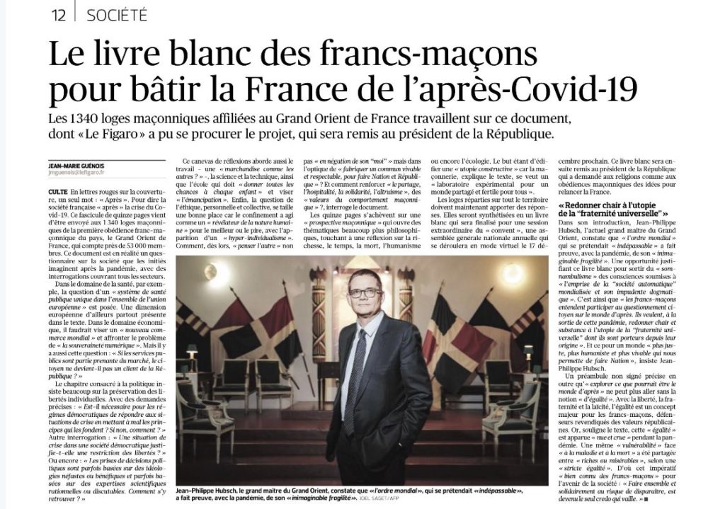 - LE LIVRE BLANC DES FRANCS-MACONS POUR BATIR LA FRANCE DE L’APRES COVID 19