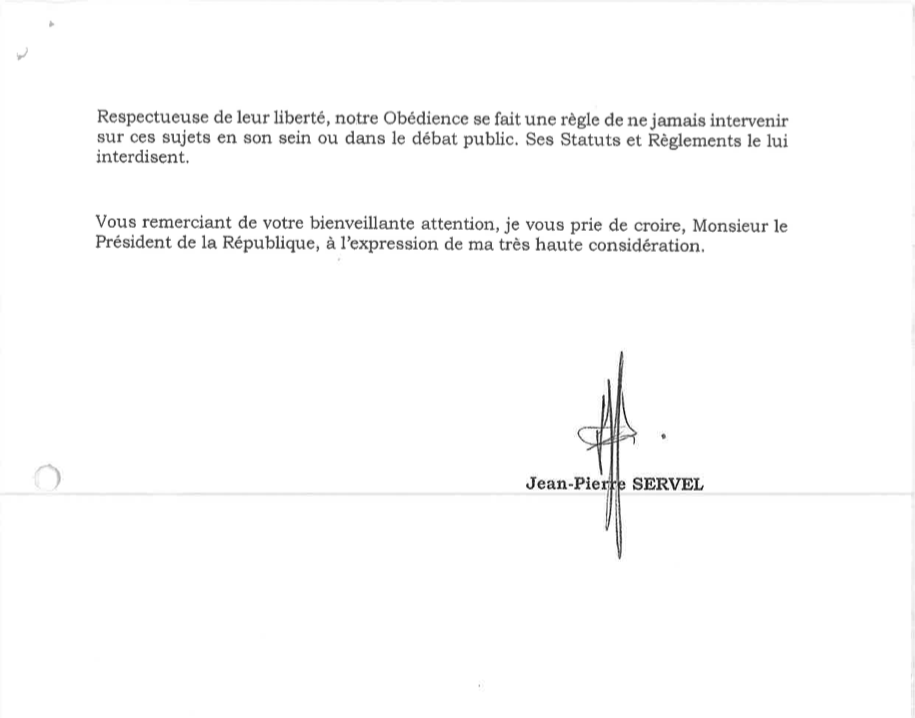 Un lettre de Jean-Pierre Servel, Grand Maître de la Grande Loge Nationale Française (GLNF) adressée au Président de la République serait ou sera t elle à l’origine d’une querelle entre le GODF et la GLNF ?