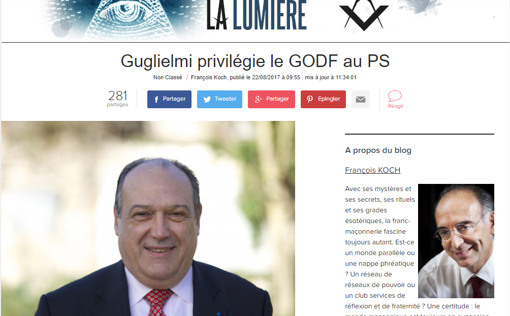 François Koch, sur son blog « Lumière » nous gratifie d’un article sur Philippe Gugliemi, actuellement Grand Vénérable du Grand Chapitre Général Rite Français du Grand Orient de France  –Guglielmi privilégie le GODF au PS –