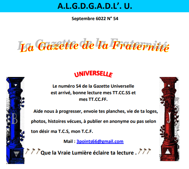 Voici le numéro 54 de la Gazette Universelle de la Fraternité