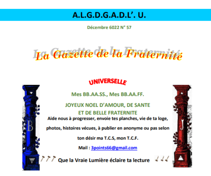 Voici le numéro 57 de la Gazette Universelle de la Fraternité