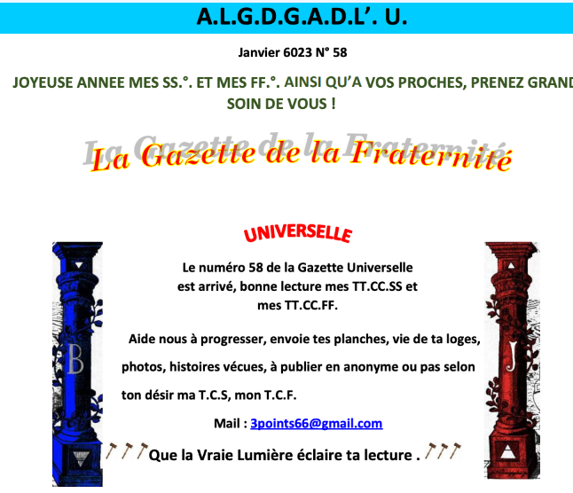 Voici le numéro 58 de la Gazette Universelle de la Fraternité