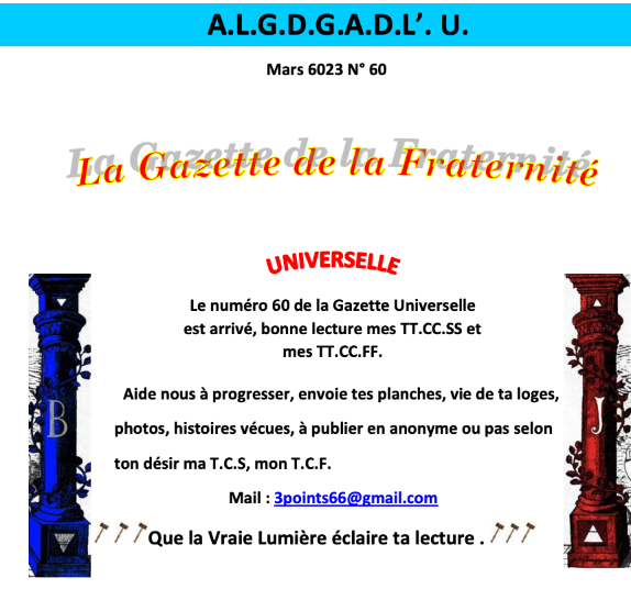 Voici le numéro 60 de la Gazette Universelle de la Fraternité