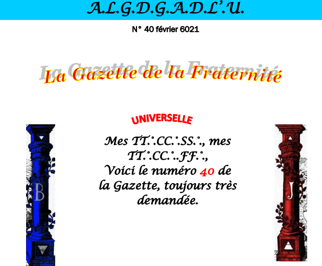 Voici le numéro 40 de la Gazette Universelle de la Fraternité