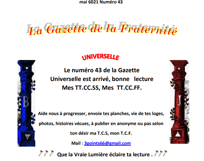 Voici le numéro 43 de la Gazette Universelle de la Fraternité