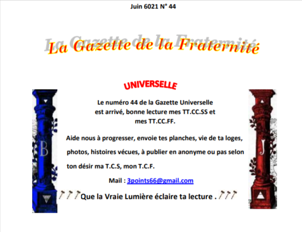 Voici le numéro 44 de la Gazette Universelle de la Fraternité