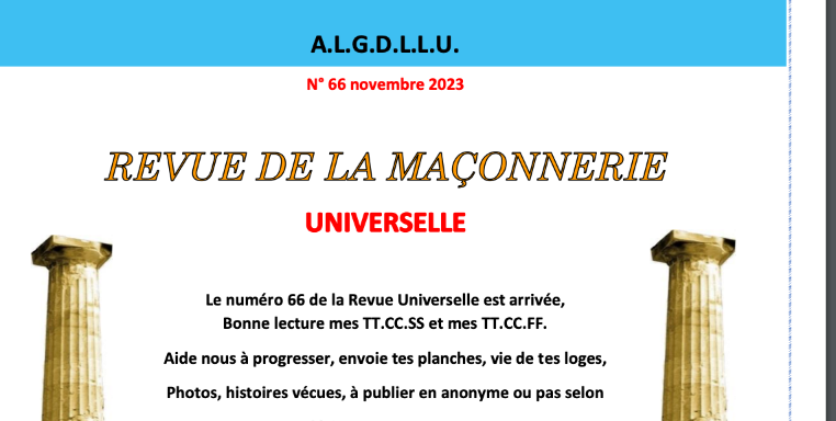 Voici le numéro 66 de la Revue Maçonnique universelle de la Fraternité