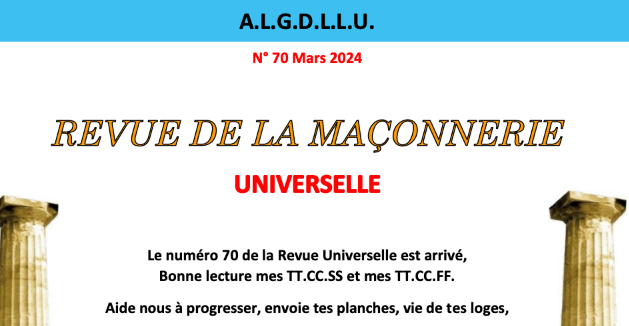 Voici le numéro 70 de la Revue Maçonnique universelle de la Fraternité