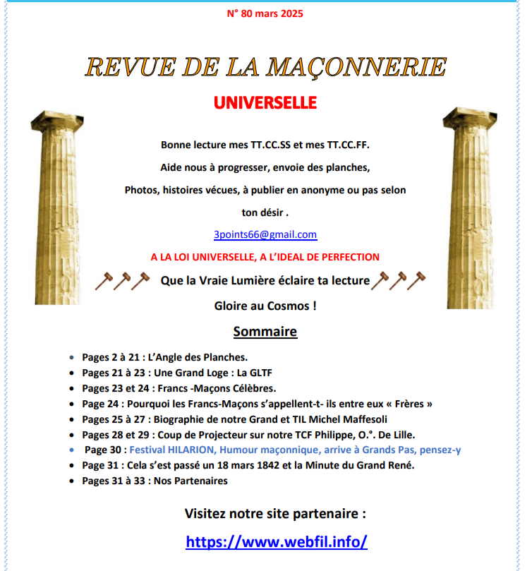Voici le numéro 80 de la Revue Maçonnique universelle de la Fraternité