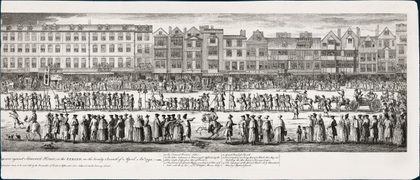 Antoine Benoît, dessinateur et graveur (1721-1770), a réalisé cette estampe mi-satirique, mi-réaliste, montrant une procession maçonnique à Londres en 1742.