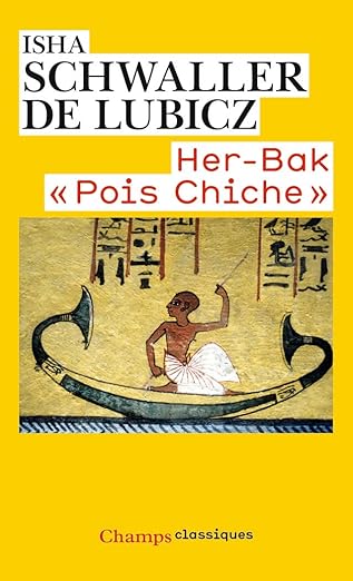 Her-Bak « Pois Chiche », Her-Bak « disciple », ou la vie d’un jeune garçon de l’Égypte ancienne, à la manière d’un conte initiatique. Pois Chiche fait le bilan de son savoir : « J‘ai connu le fleuve, j’ai cultivé la terre, j’ai observé quelques bêtes… pas assez ! J’ai travaillé la pierre… »