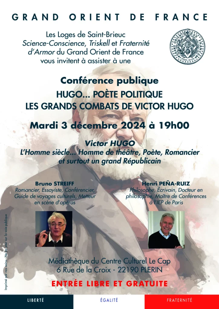 Conférence publique organisée par les Loges de Saint-Brieuc Science-Conscience, Triskell et Fraternité d’Armor du Grand Orient de France