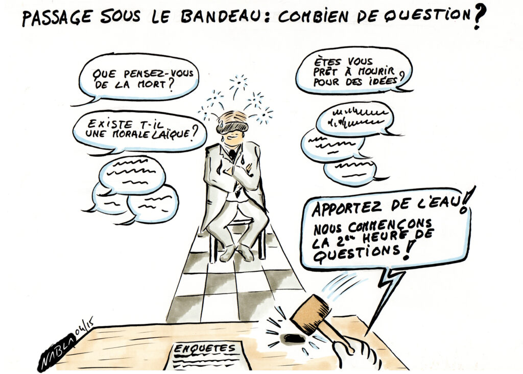 HUMOUR – PASSAGE SOUS LE BANDEAU Web maçonnique | 16 octobre 2022 | 1 | by A.S. Voici une « Griffonnade » de Nabla sur l’un des moments les plus mémorables de tout franc-maçon !