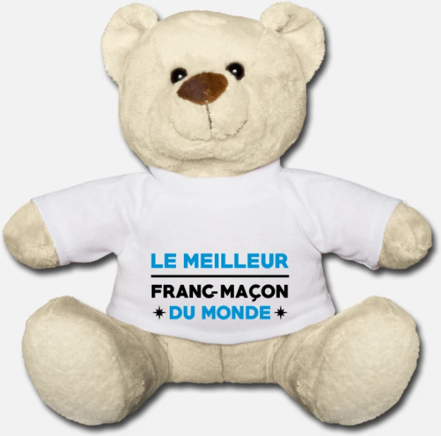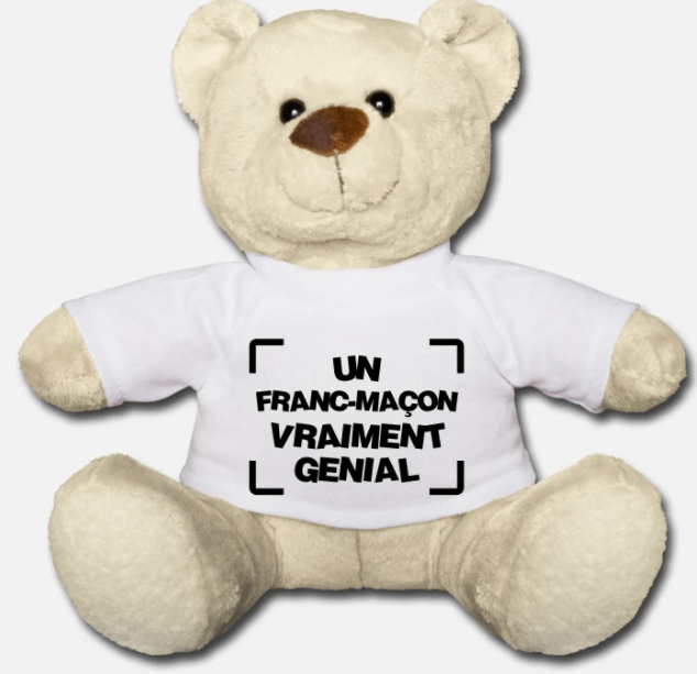 Mais il n’y a pas que des vêtements, on y trouve aussi des ours en peluche avec des inscriptions maçonniques :