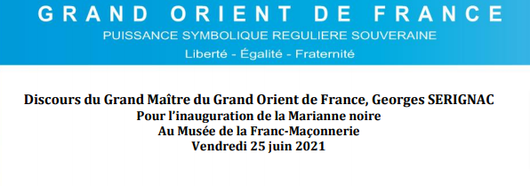 Discours du Grand Maître du GODF, Georges SERIGNAC pour l’inauguration de la Marianne noire au Musée de la Franc-Maçonnerie le 25 juin 2021