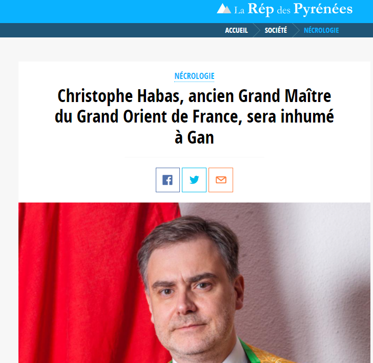 Un article du site d’information La République des Pyrénées – « Christophe Habas, ancien Grand Maître du Grand Orient de France, sera inhumé à Gan«