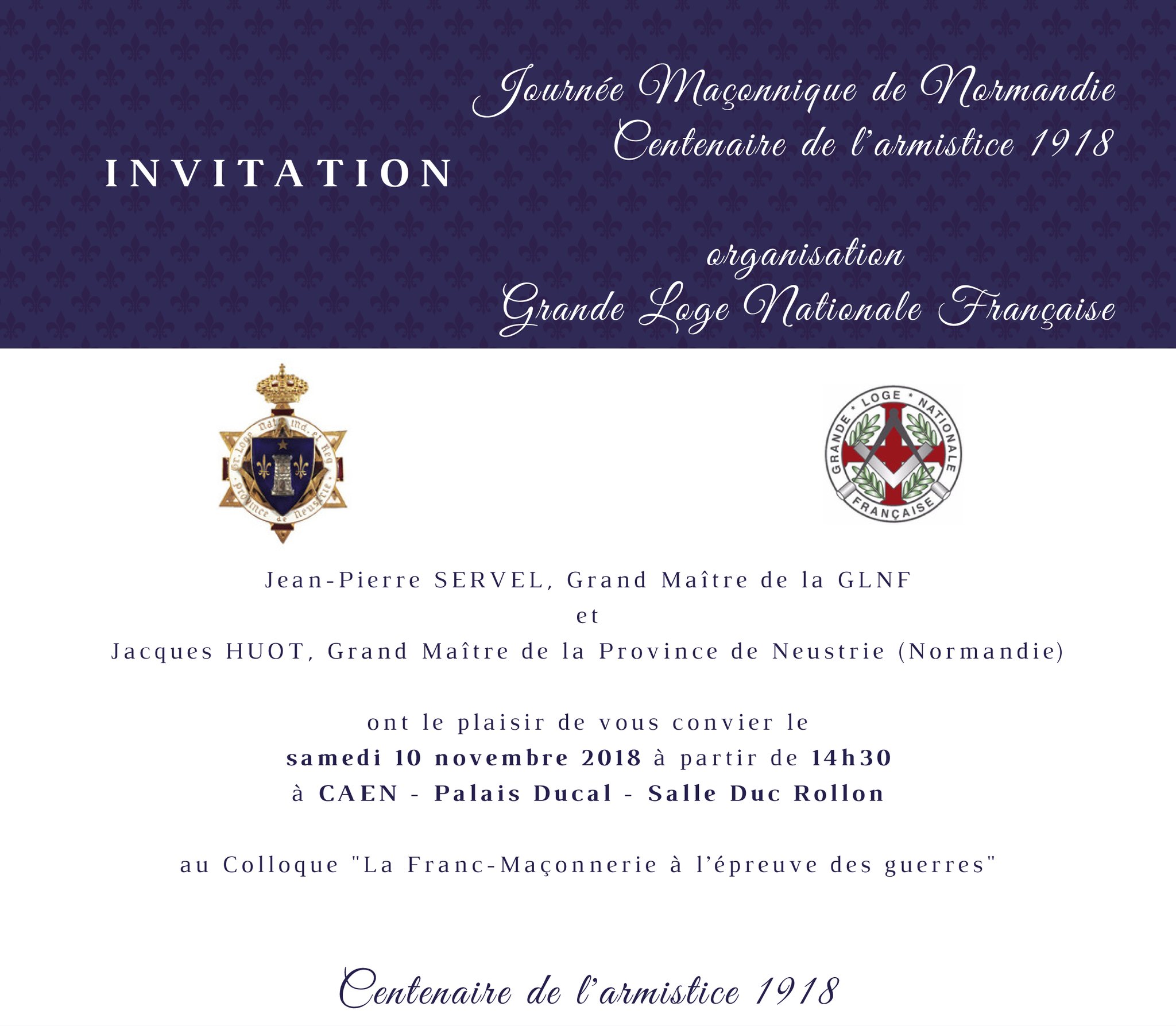 JOURNÉE MAÇONNIQUE DE NORMANDIE – CENTENAIRE DE L’ARMISTICE DE 1918 – GLNF