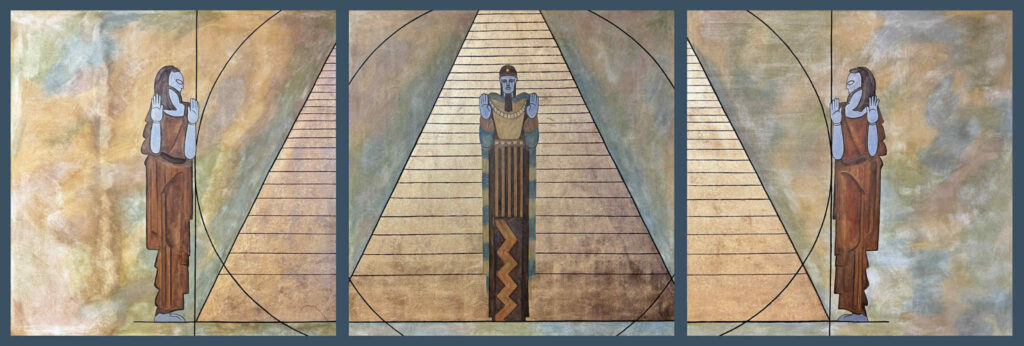 Ayant retrouvé l’œuvre originale proposée en 1945, il en a réalisé une version contemporaine et réduite, composée de trois panneaux de 1,50 m sur 1,50 m.