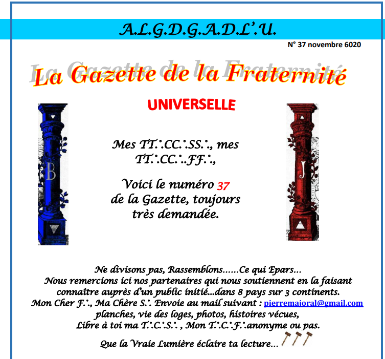 Voici le numéro 37 de la Gazette Universelle de la Fraternité