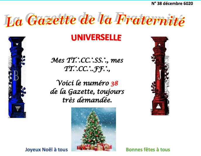 Voici le numéro 38 de la Gazette Universelle de la Fraternité