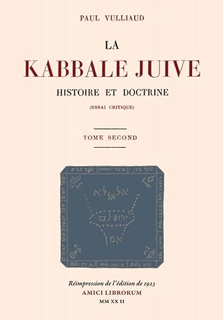 Tome Second. Le Rituel: Bénédiction pontificale; Prières; exégèse des Noms. — Les Amulettes. — Le mystère messianique dans l’école de R. S. ben Jochaï. — Comment il faut lire le «Sepher ha-Zohar». — Une équipée messianique: Zabbataï Zévi; les Hassidim. — Influence de la Kabbale: Les Kabbalistes chrétiens. — Le Kabbalisme moderne allemand: Jacob Boehme et Molitor. — Kabbale et Franc-Maçonnerie. — Origines de la Kabbale. — Conclusions.
