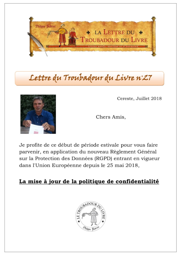 TÉLÉCHARGER : LA LETTRE DU TROUBADOUR DU LIVRE N° 27 – JUILLET 2018