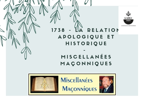 Publication de la Relation apologique et historique de la Société des francs-maçons, par J.G.D.M.F.M. Il s’agit de l’un des premiers livres de révélations publiés en France ; d’où son intérêt.