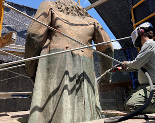 Nettoyage micro-abrasif de la statue d’Albert Pike pour éliminer la corrosion