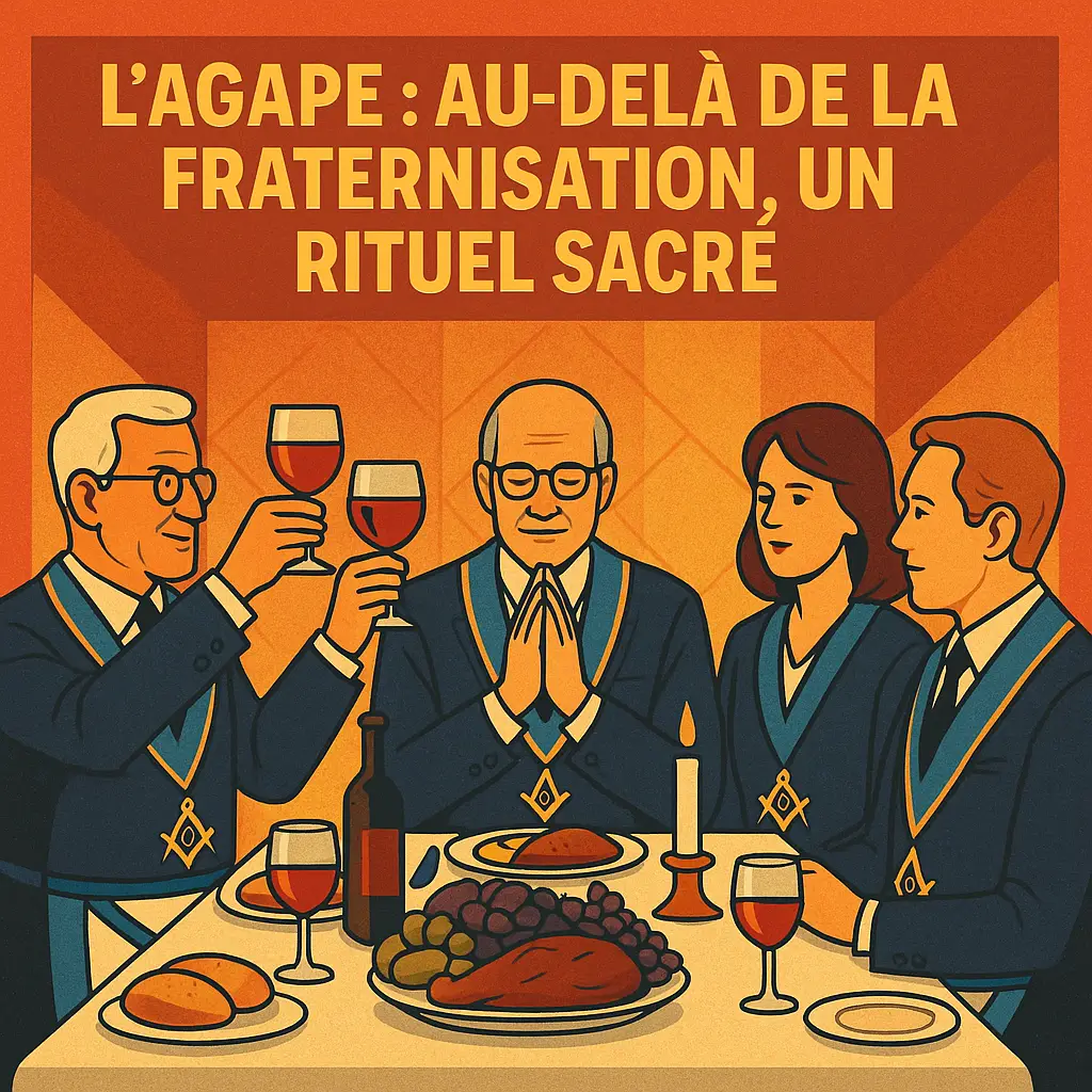 L’agape ne doit jamais être réduite à un simple banquet profane. Elle est un rituel sacré, à respecter comme tel, au même titre que les cérémonies tenues dans le Temple. Le dernier repas du Christ, ultime agape, nous rappelle qu’elle peut ouvrir des portes spirituelles immenses, mais aussi être profanée si elle devient lieu d’intérêts matériels. C’est à chaque franc-maçon d’assumer cette responsabilité : faire de l’agape non pas une convivialité banale, mais une véritable célébration sacrée.