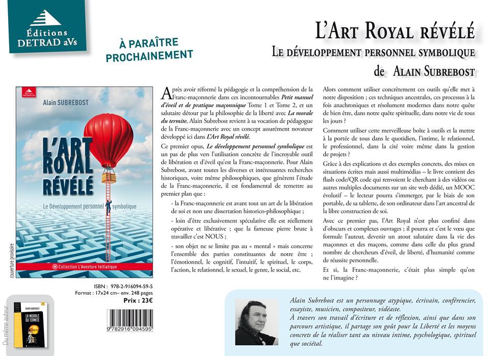 🙂 avec « L’Art Royal Révélé – Le développement personnel symbolique » aux Editions Detrad !