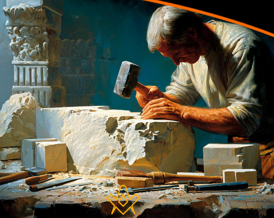 Dans le silence où les mots s’évanouissent, le coup du marteau révèle le travail intemporel de la construction de l’être intérieur. Cette réflexion sur le symbolisme maçonnique, le silence et la transformation explore comment chaque coup brise l’orgueil, éveille la lumière et guide la pierre brute vers le raffinement, le courage et le voyage sans fin du devenir.