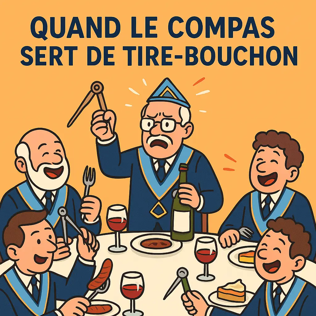 Car après la solennité du Temple, la gravité des mots et la rigueur des symboles… vient le moment où les Frères se réunissent autour de la table. Là, plus besoin de maillet ni de glaive : les armes sacrées deviennent fourchettes et tire-bouchons. Et, croyez-moi, certaines mains tremblent plus en servant le vin qu’en tracer l’étoile flamboyante.