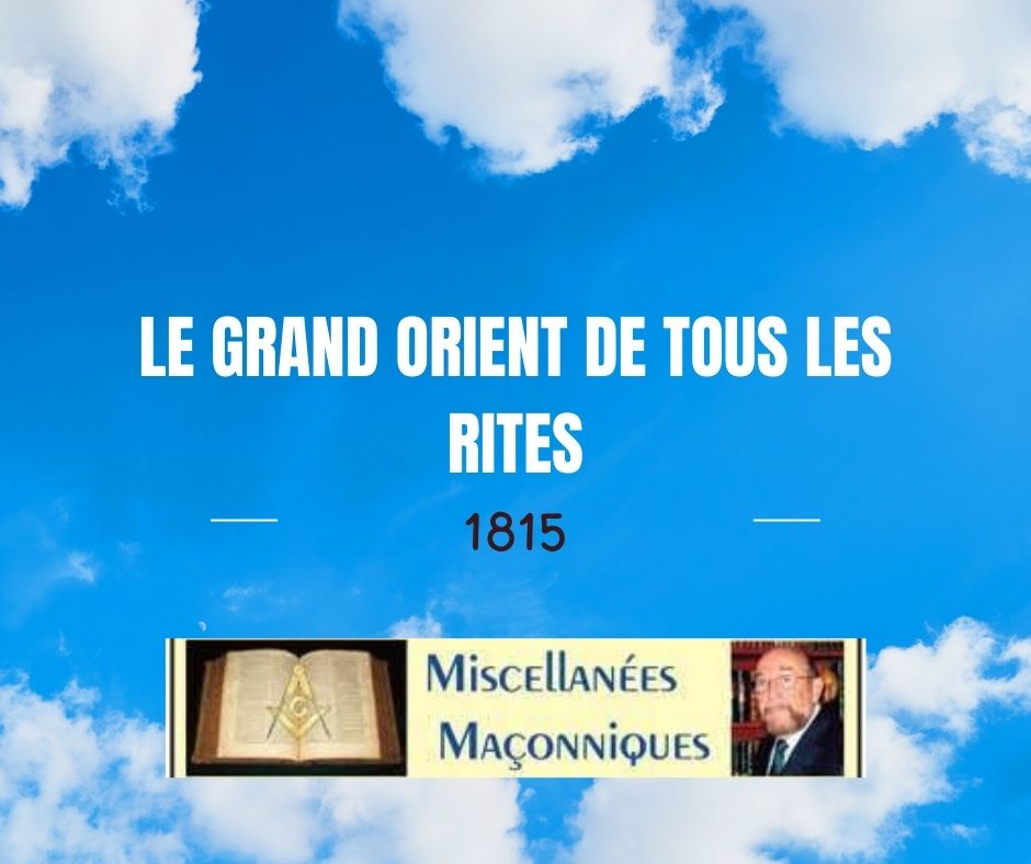 N’étant pas parvenu à convaincre, malgré quelques désaffections, les frères écossais des Suprêmes Conseils du 33e degré, le Grand Orient procède en septembre 1815 à l’organisation en son sein de l’« exercice de tous les droits qui lui appartiennent en France ».