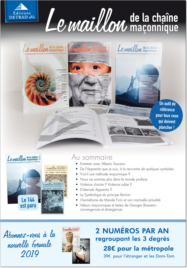 Le Maillon de la Chaîne Maçonnique N° 144 , revue indépendante d’information et de documentation inter-obédientielles paraitaux éditions Detrad :