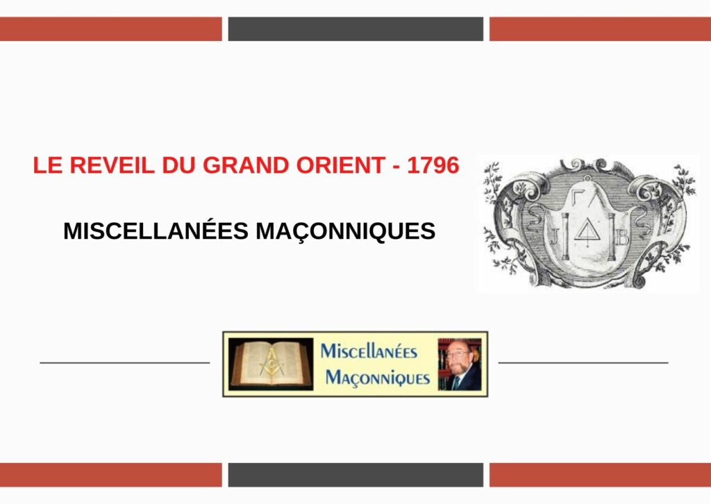 La reprise officielle des travaux du Grand Orient de Fran­ce, qui a cessé toute activité apparente en 1793, a lieu le 7 juin 1796 sous la présidence de son nouveau Grand Vénérable, Roëttiers de Montaleau – à qui les francs-maçons sont redevables d’avoir préservé les archives de l’Ordre maçonnique en les entreposant à son domicile.