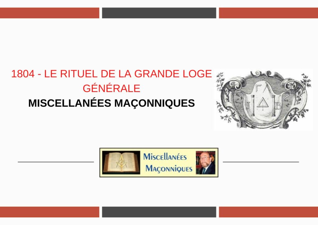 LE RITUEL DE LA GRANDE LOGE GÉNÉRALE