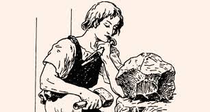 Maillet et ciseau en mains, il doit tailler sa pierre brute. Là aussi, les significations sont diverses. La plus commune tend à vouloir en faire une pierre cubique. Pourquoi pas. Ce n’est en tous cas pas la seule manière d’appréhender ces symboles et je laisse à chacun le soin d’effectuer ce travail d’appropriation des symboles selon sa quête personnelle.